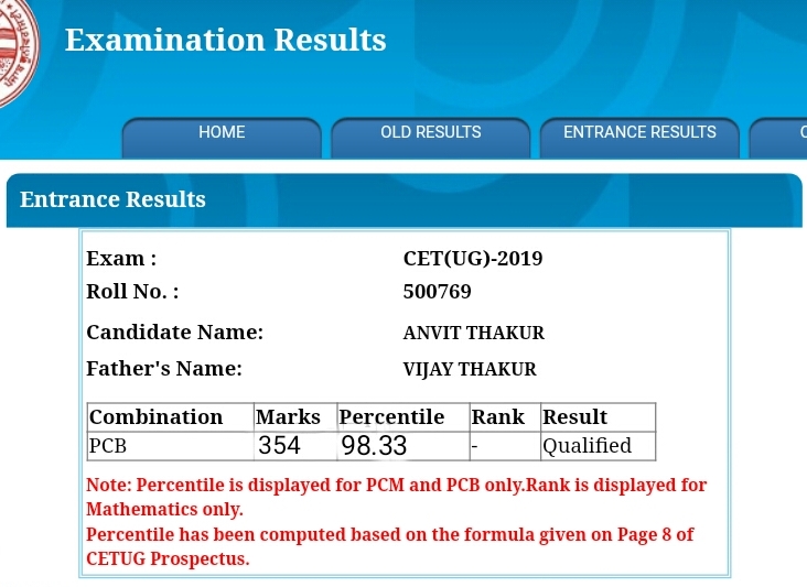 Anvit Thakur, Holyfaith School , Scored 354/360 in PUCET Exam 2019